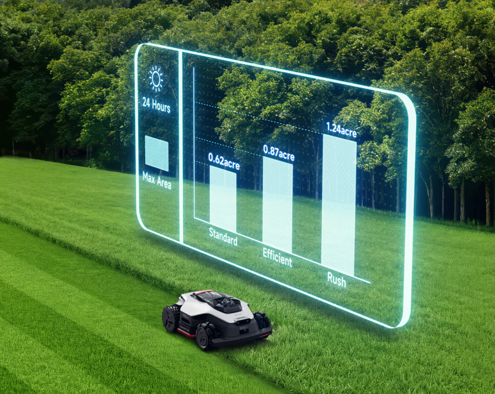 Výšku sečení lze snadno nastavit v rozmezí 3–10 cm, což umožňuje přizpůsobit údržbu aktuálním podmínkám i typu trávníku. Sekačka nabízí několik režimů sečení, včetně sečení celé plochy, okrajů, konkrétních zón nebo manuálního ovládání. Díky plánování a chytrým harmonogramům se automaticky přizpůsobuje růstu trávy během sezóny.