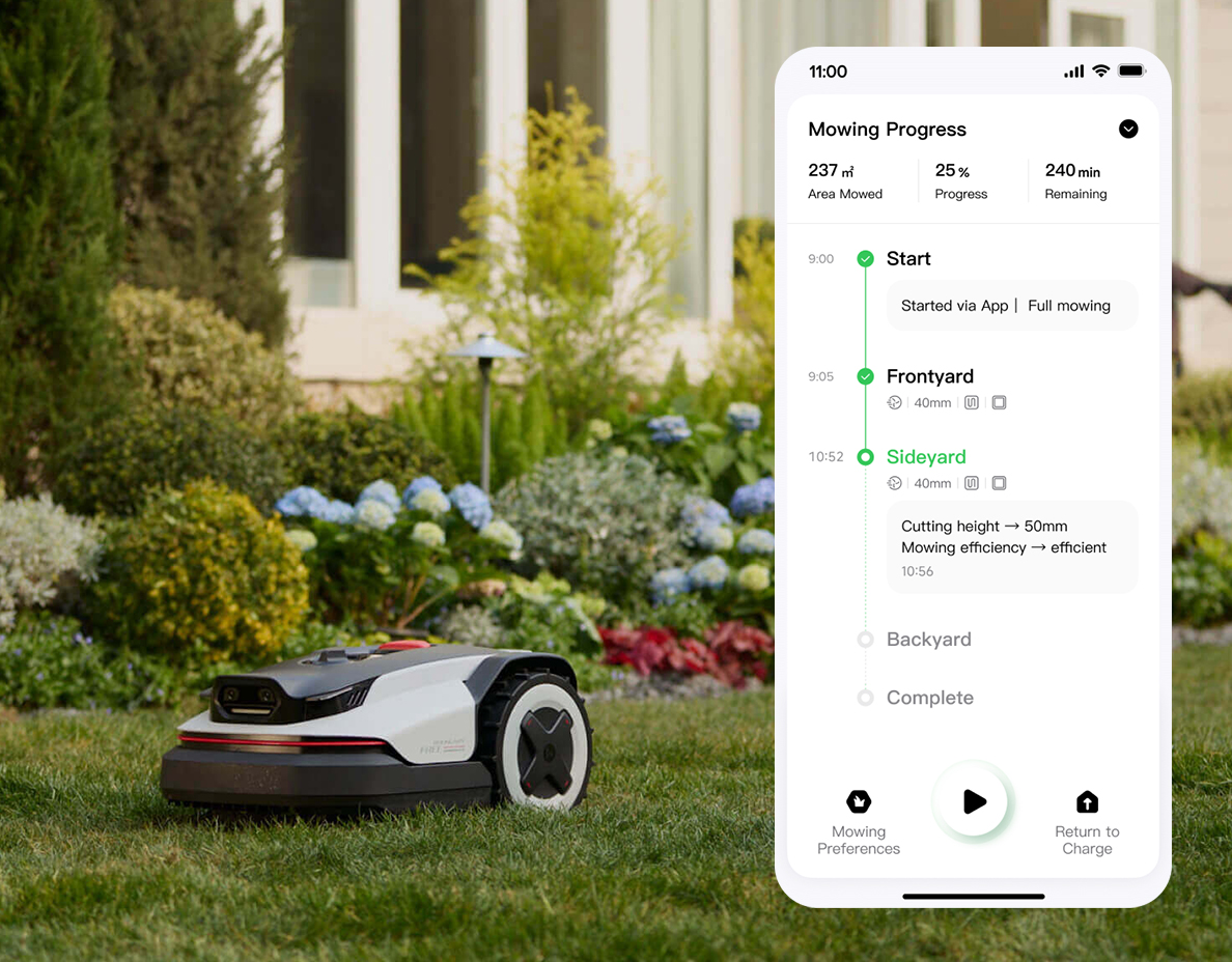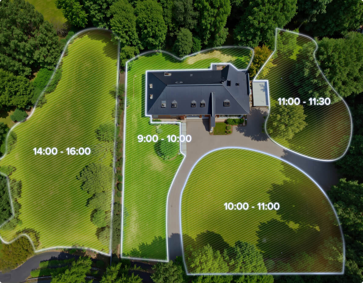 Optimální plány sekání jsou automaticky generovány podle terénu vaší zahrady, aby byl trávník vždy zdravý, hustý a dokonale upravený.