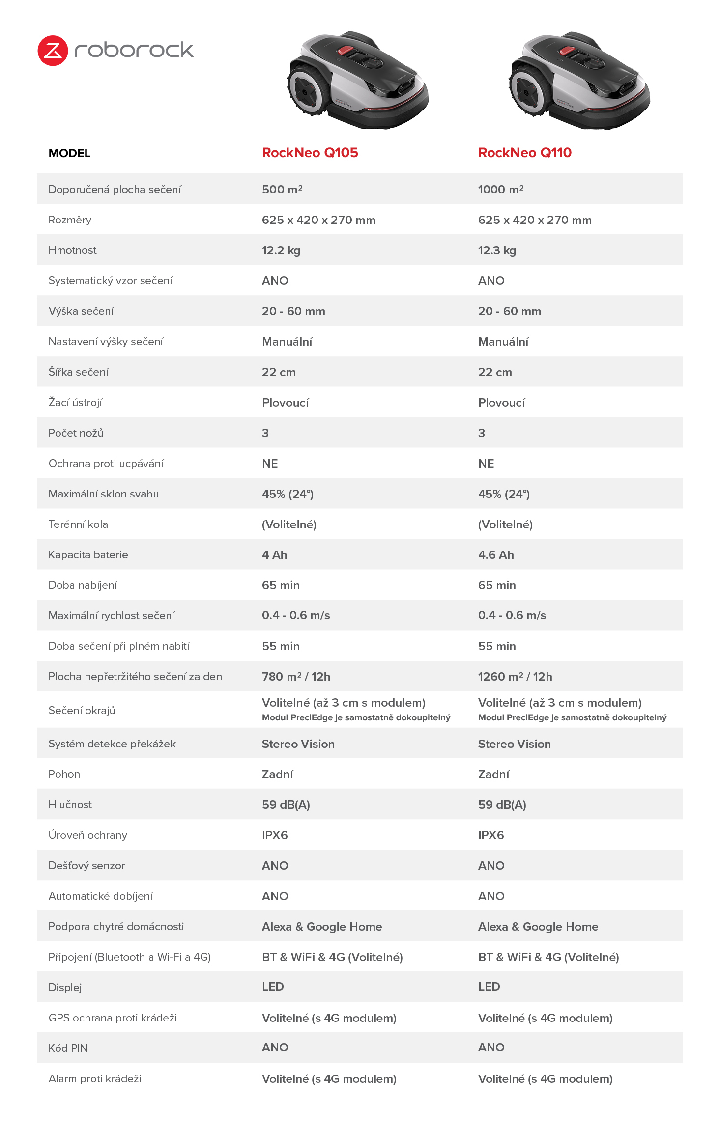Roborock RockNeo Q110 je pokročilá robotická sekačka navržená pro trávníky až do 1 000 m². Nabízí kombinaci inteligentní navigace, vysokého výkonu a minimálních nároků na obsluhu, díky čemuž zvládne údržbu větších zahrad zcela automaticky.